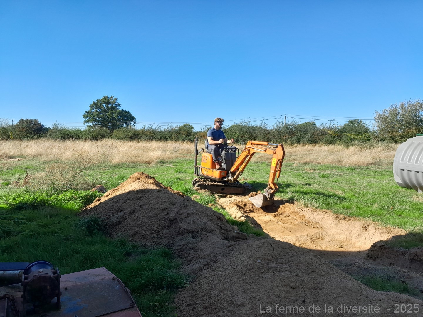 Er werden ook handen uit de mouwen gestoken. Samen met Stephan is de hooizolder voor 3/4 leeggehaald, terwijl Yannick met de kraan de put voor de septische tank aan het graven was. Met dank aan de regen van de voorbij 3 weken kan er nu toch diep genoeg gegraven worden.