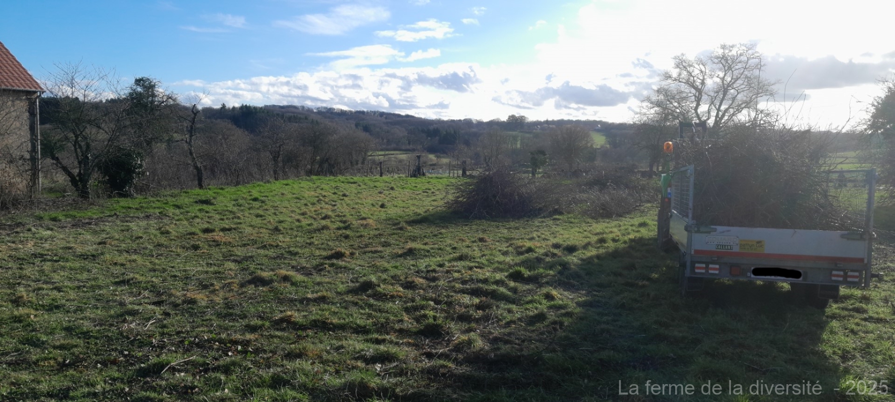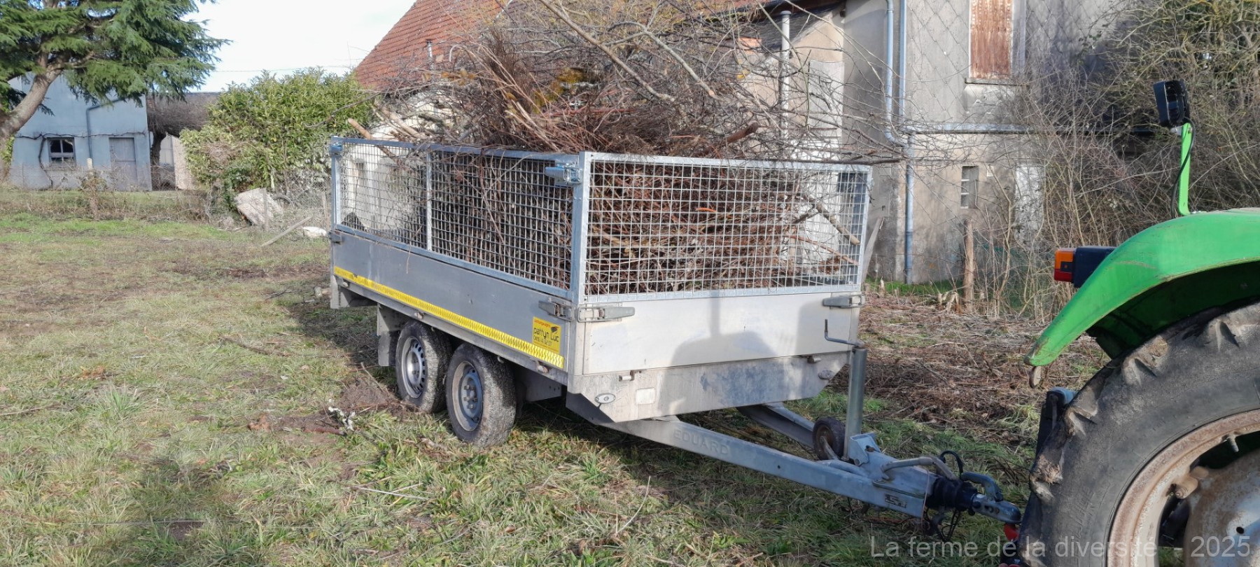 De eerste twee ladingen laadde ik met de tractor. Dat bleek al snel een slecht idee: de takkenhopen waren gemaakt om in brand te steken, niet om netjes op te scheppen. Alles lag kriskras door elkaar.